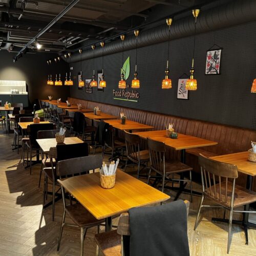Här har vi ett lättarbetat kök och en öppen restaurang med närheten till företagen i huset och alla i området.